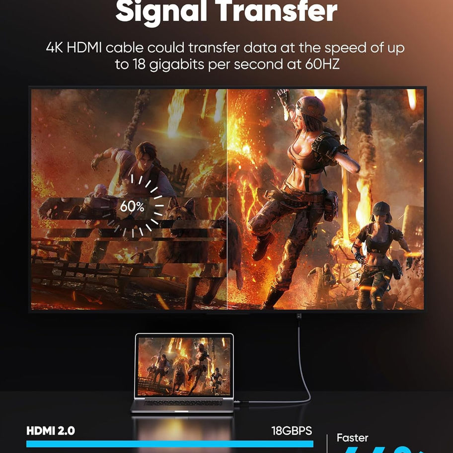 High Speed 18Gbps Data Capacity: Highwings HDMI 2.0 Cable transmits the data onto the speed up to 18Gbps of bandwidth. Transmit audio, video and photos at lightning speed without having to wait for buffering. Plug and play without preinstalling drivers.